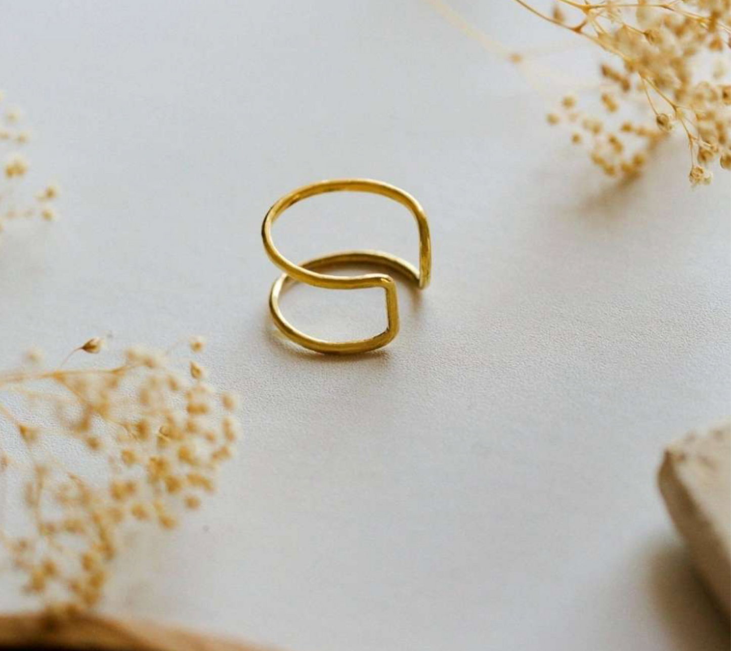 The Chloe Ring mixes the delicate and modern. Open for a versatile fit, with a unique geometric design, this handmade ring is unlike any other. This ethically handcrafted ring is designed to teach young women introductory jewelry making skills, as they begin their path to true freedom. For versatility, we love wearing this ring both directions.
